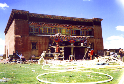 (因經費之拮据及建蓋的困難,寺廟的正殿經過多年的修建,非常辛苦.)